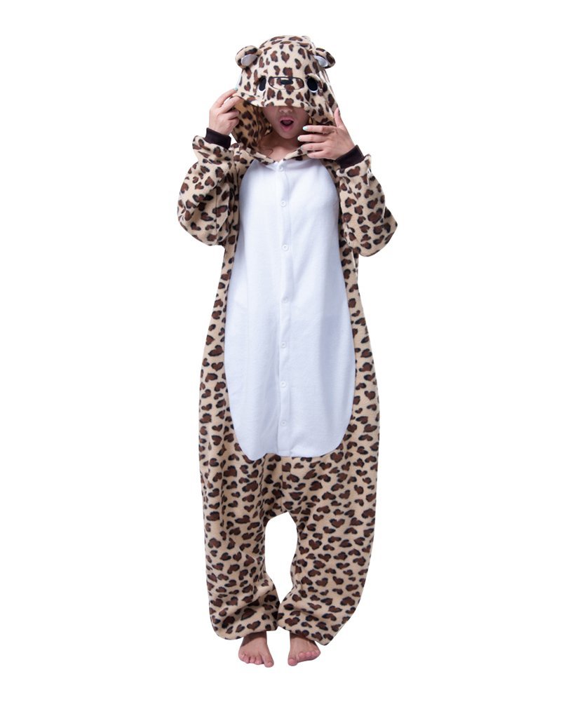 Pigiama pigiamone animale in flanella intero LEOPARDO, pigiama invernale, costume carnevale cosplay unisex adulto bambini